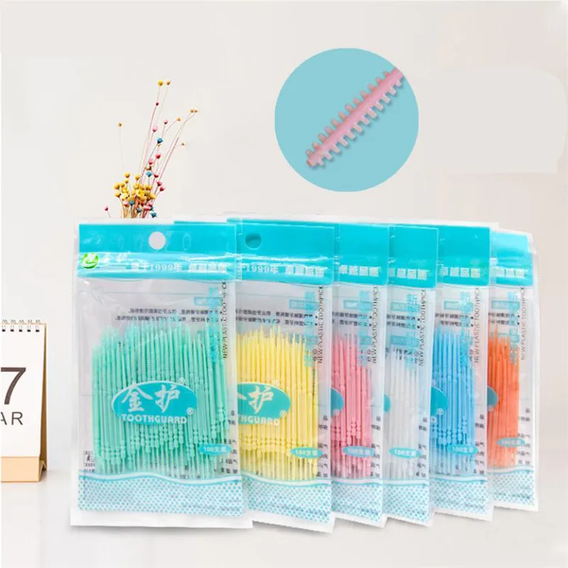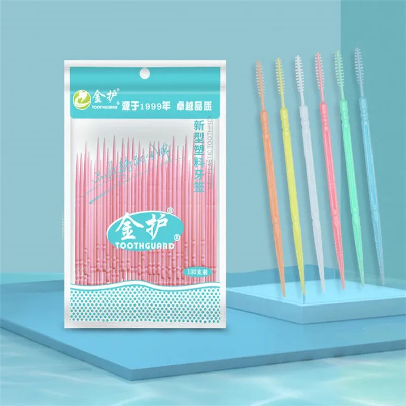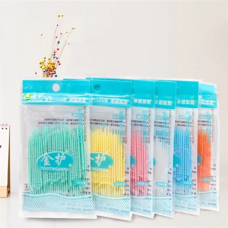 100 шт./пакет зубная нить с двойной головкой, межзубный зубочистка, щетка, зубная палочка, уход за зубами, зубочистка, s зубочистка