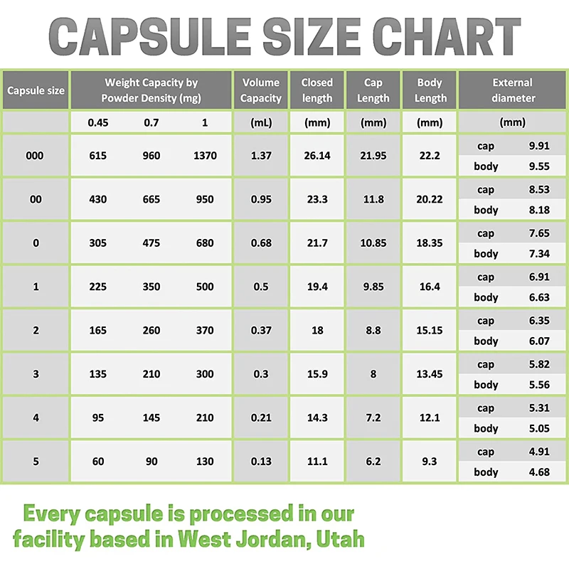 В наличии 5 размеров капсул, Размер 000/00/0/1/4.