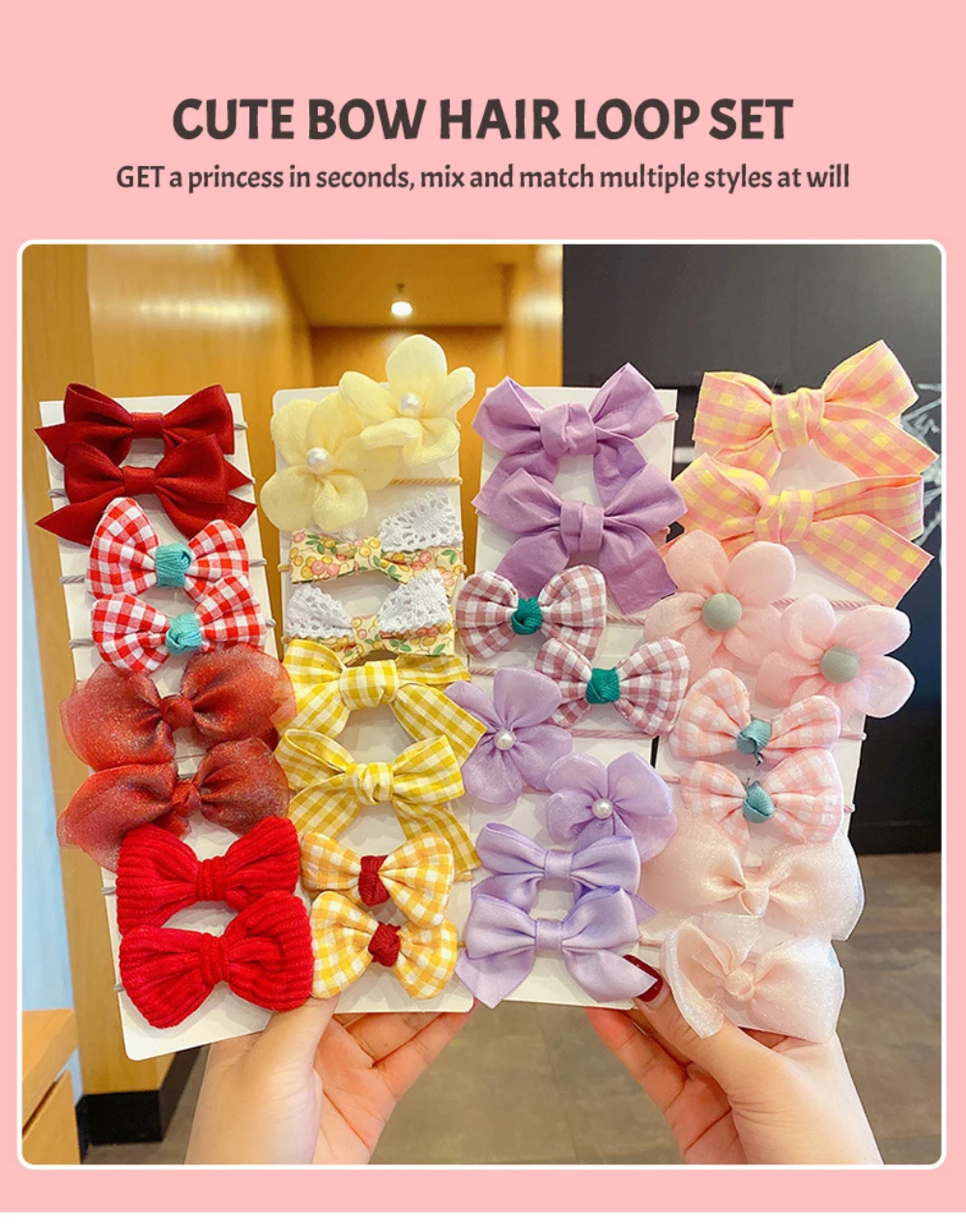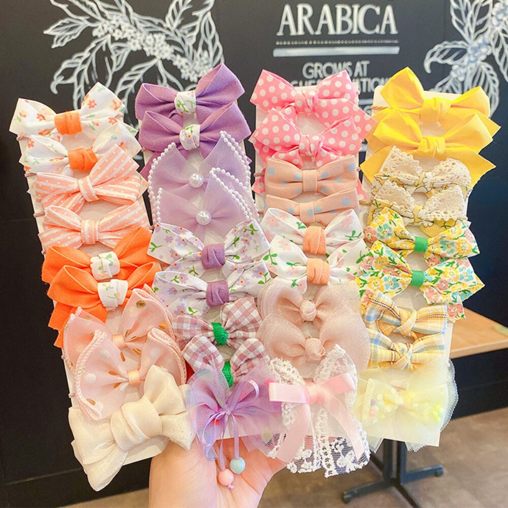 Аксессуары для волос с цветочным бантом 100 шт./Пакет, детский ободок для волос, цвет, мультисценарий, модный универсальный головной убор с конским хвостом