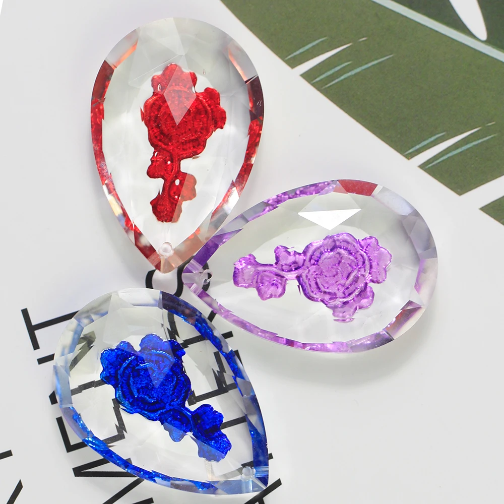 100 штук кристалл резная Роза Призма кулон 50 мм различные цвета стекла фэн шуй части висит на люстра