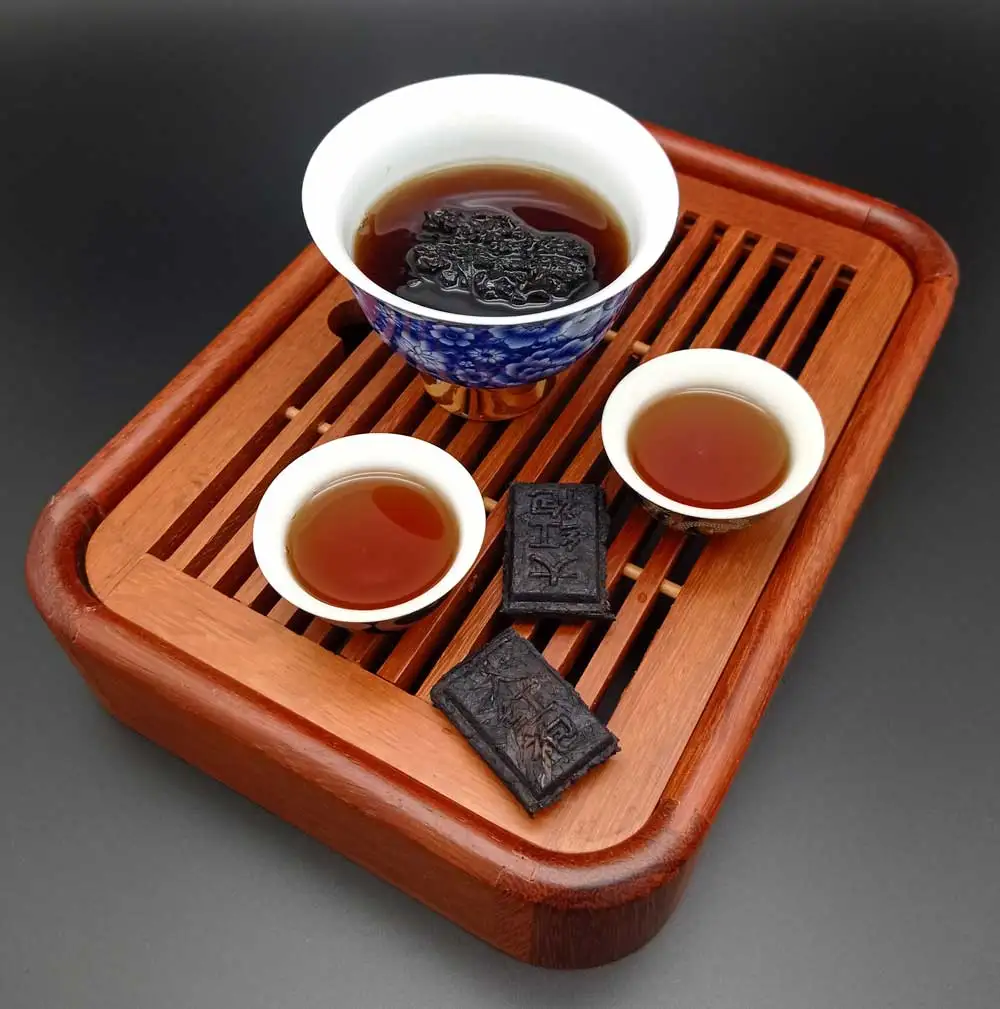А это - прессованный ДаХунПао высокого качества и его цена с возрастом растёт, как у пуэра. Качество со временем улучшается, вкус становится более ярким, а действие - более бодрым и мягким. При этом он удобен в дороге. Один кусочек такой «шоколадки» выдерживает более 10 проливов и его достаточно, чтобы напоить чаем несколько человек. Многие любители ДаХунПао ищут именно такую форму и часто просят нас найти такой чай в Китае.