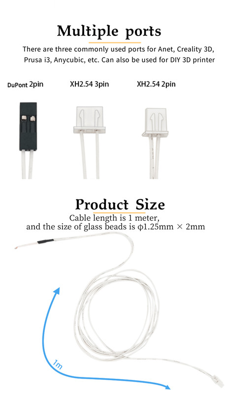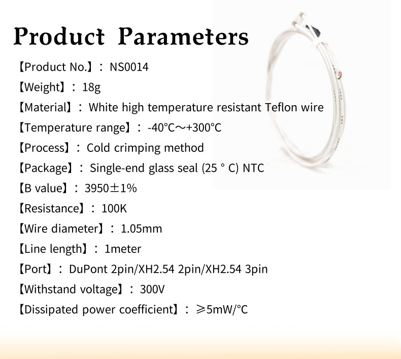 Product Name: Клемма датчика температуры термистора с трехмерной печатью NTC с несимметричным стеклом 100K 1% 3950 300 градусов