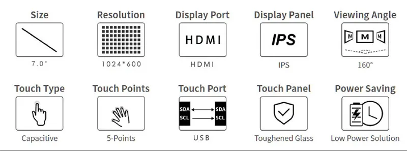 Это 7-дюймовый емкостный сенсорный экран для Raspberry Pi, поддерживает Raspberry Pi 4 Model B и 3B +/3B, хост компьютера, который поддерживает системы Windows 11 / 10/8,1/8/7 и может служить дополнительным экраном,