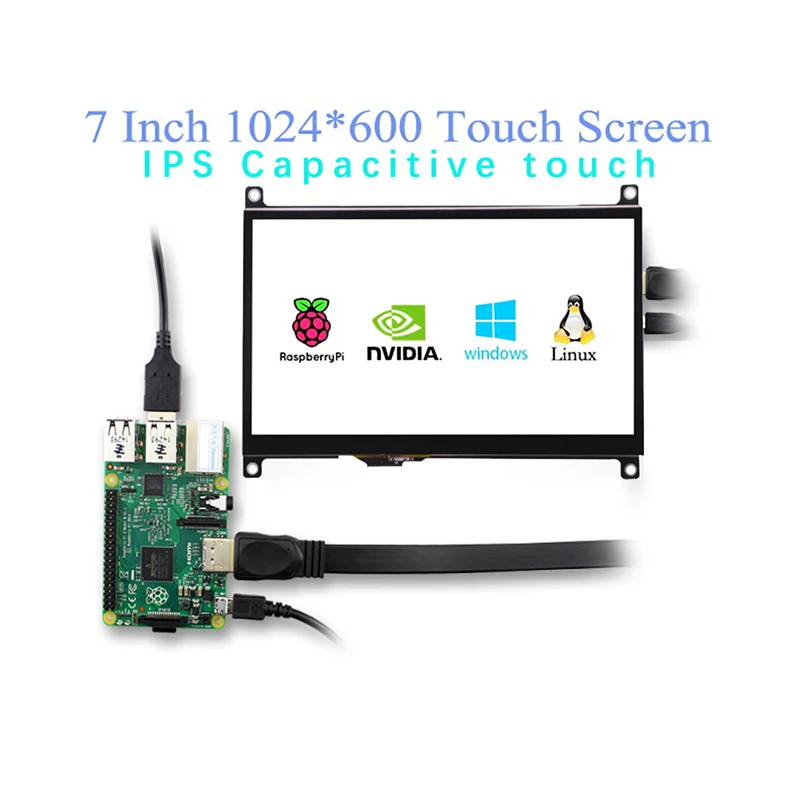 7-дюймовый ЖК-дисплей Raspberry Pi с сенсорным экраном 1024*600 HDMI TFT-монитор + чехол, совместимый с Raspberry Pi 4, модель B/3B +/3B, поддержка драйверов для ПК/ноутбука Nvidia Jetson Nano бесплатно