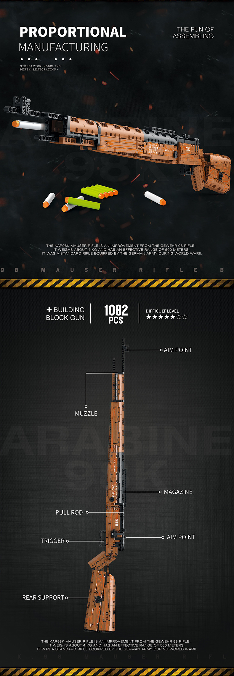 1082 шт KAR98K СТРОИТЕЛЬНЫЙ БЛОК ПИСТОЛЕТ
