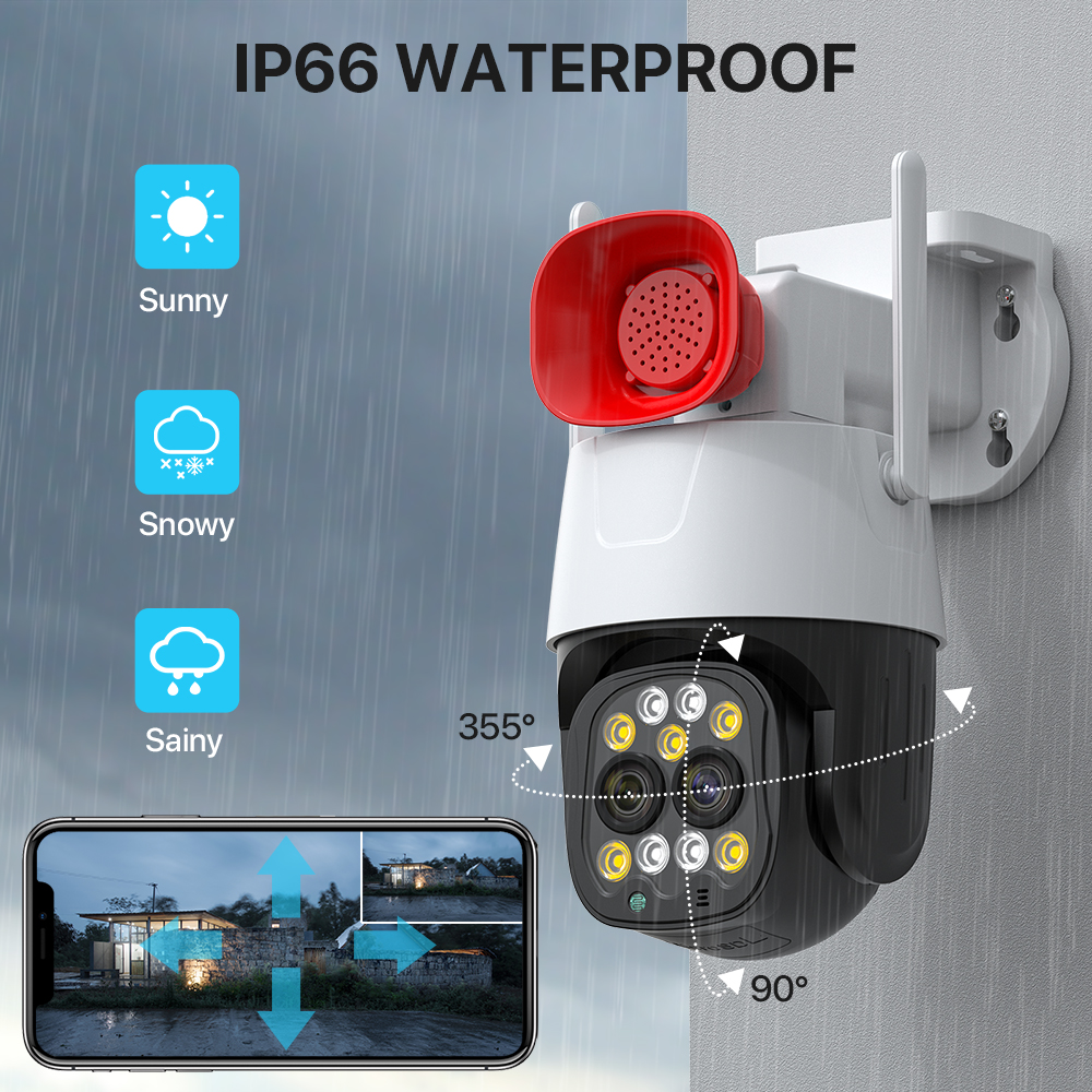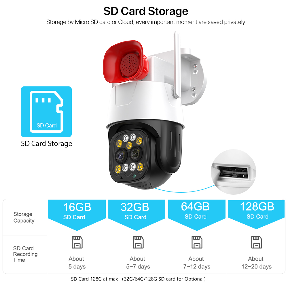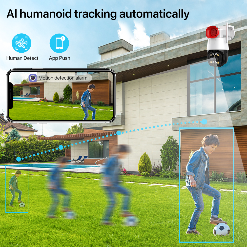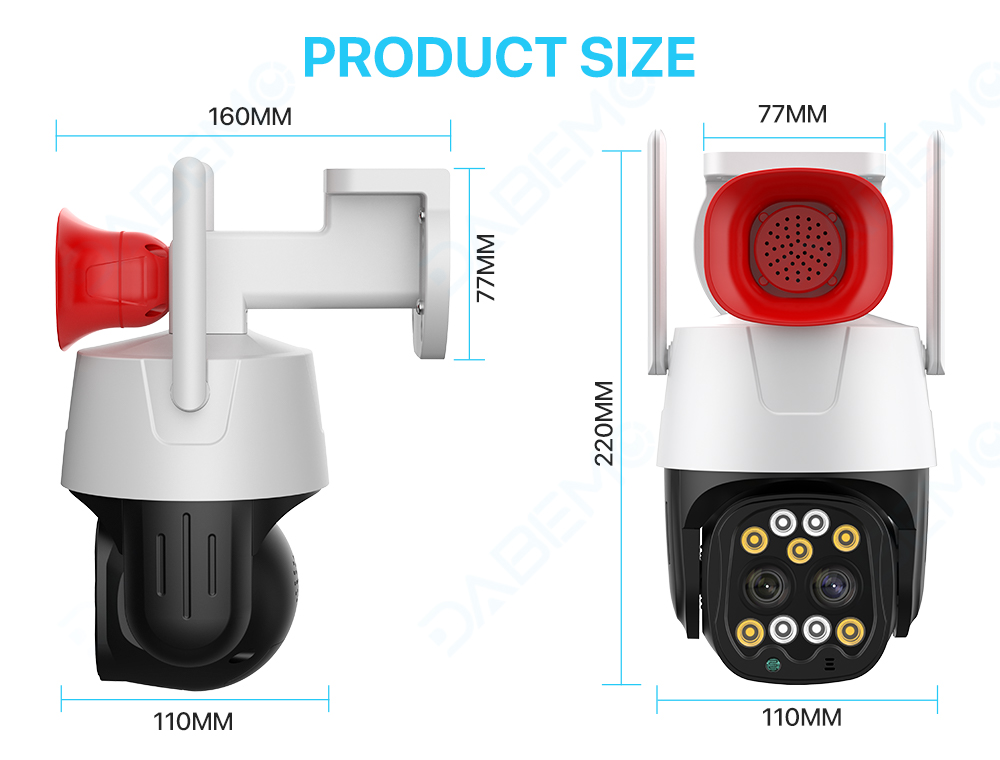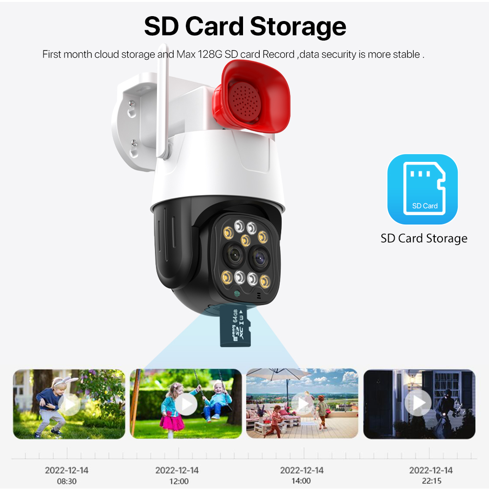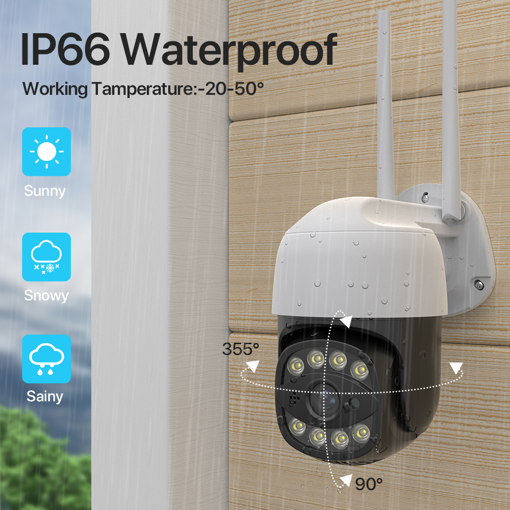 -Камера видеонаблюдения PTZ имеет функцию панорамирования и может вращаться на 350 ° по горизонтали с высокой скоростью. Поворот наклона на 90 ° позволяет обеспечить надежный мониторинг дома и бизнеса без вертикальных ограничений и «мертвых зон».