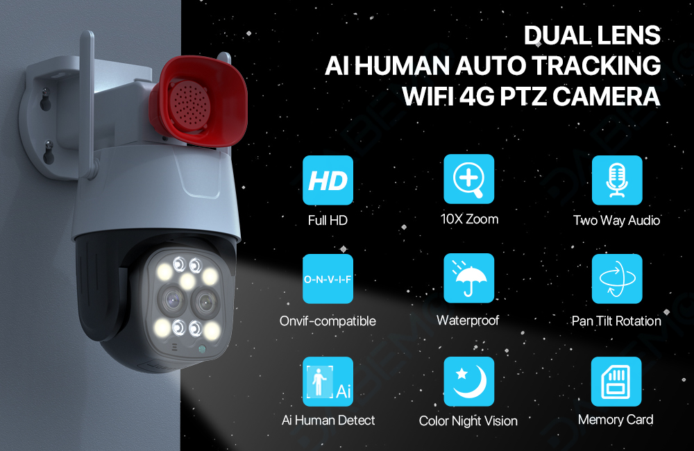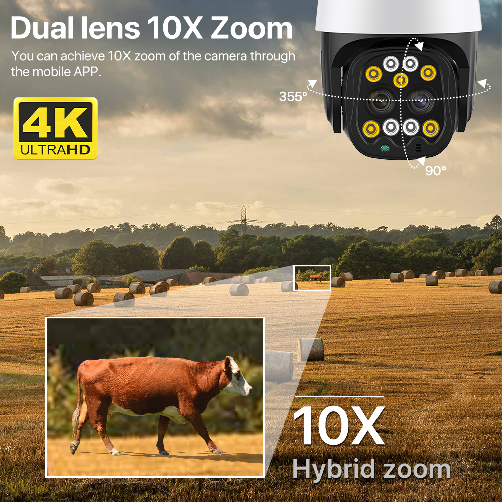10х зум, двойная IP-камера с объективом, 4G, SIM-карта, наружная PTZ-камера, 4K, 8 Мп, Wi-Fi, камера безопасности с автоматическим отслеживанием, P2P камера наблюдения