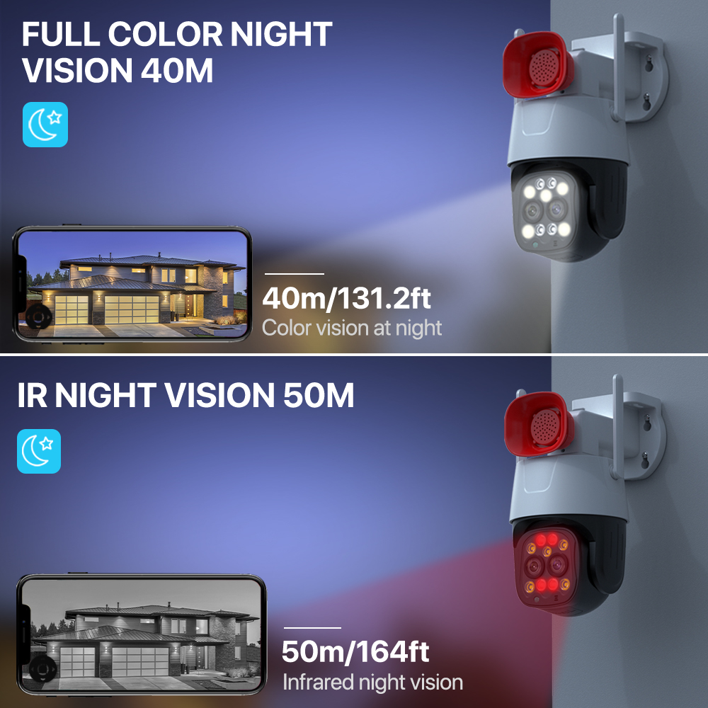 -Встроенные 4 инфракрасных светодиода, 5 белых светодиодов, обеспечивающие цветовые и четкие Эффекты изображения, на расстоянии до 50 м.