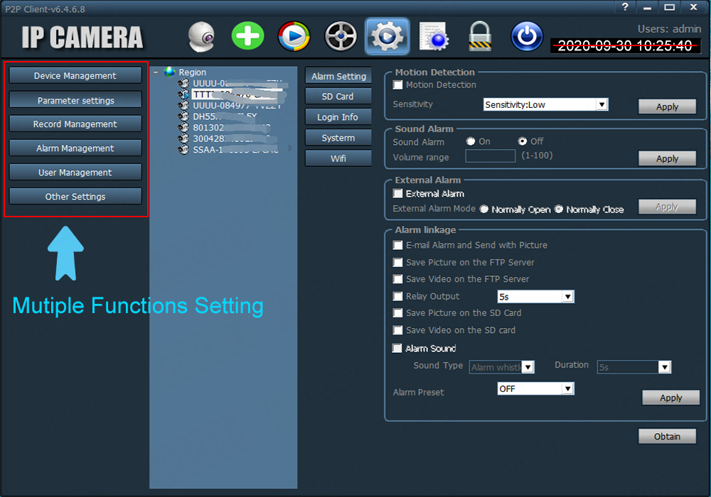-Обеспечьте функцию сигнализации обнаружения движения (площадь, чувствительность можно установить);