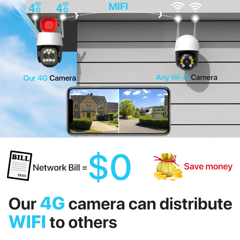 -Камера 4G может распространять MIFI на любую работу с подключением камеры WIFI.
