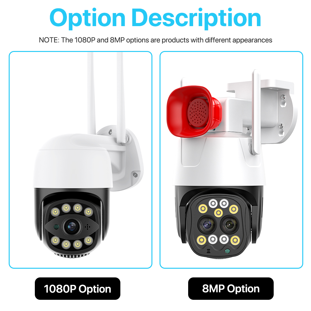 - ПРИМЕЧАНИЕ: варианты 1080P и 8MP-это продукты с разным внешним вида, пожалуйста, обратитесь к изображениям.