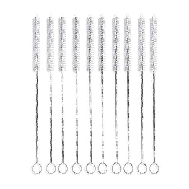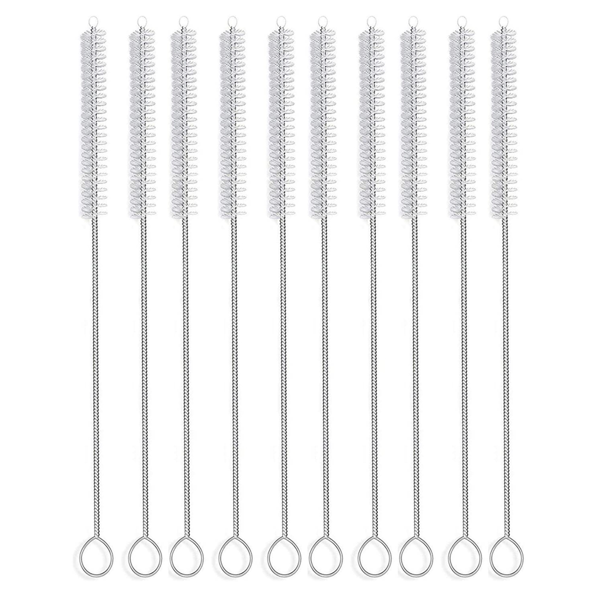 10Pcs Питьевой Соломы Очистка Щетка Набор Соломы Труба Очиститель Нейлон Нержавеющей Стали Длинная Ручка Очистка Щетки Для Соломинок