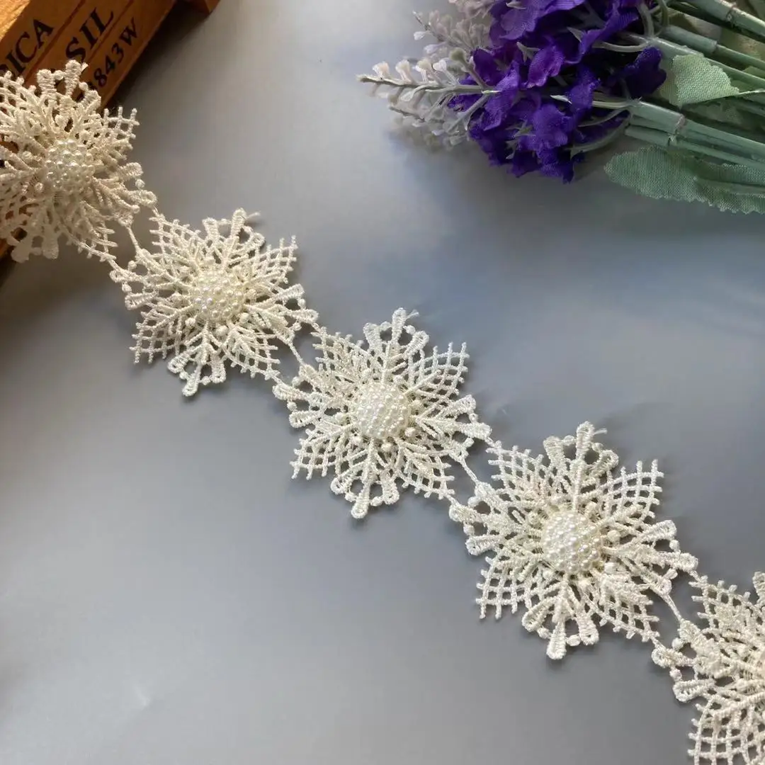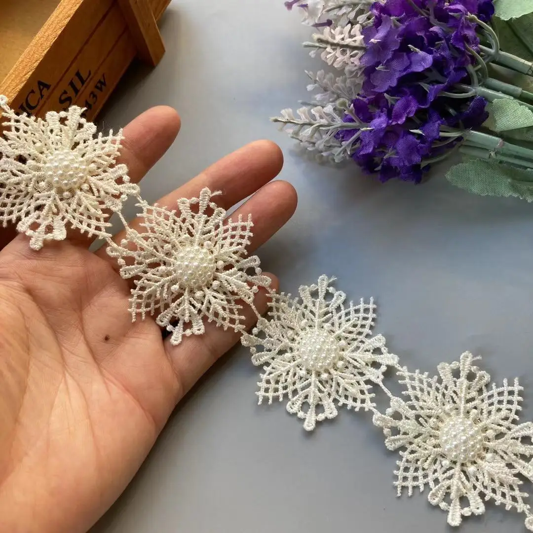 10X слоновая кость, снежинка, жемчуг, ручная работа, вышитый бисером, цветок, кружевная отделка, лента, двухслойная аппликация, платье, сделай сам, шитье, ремесло, 5 см