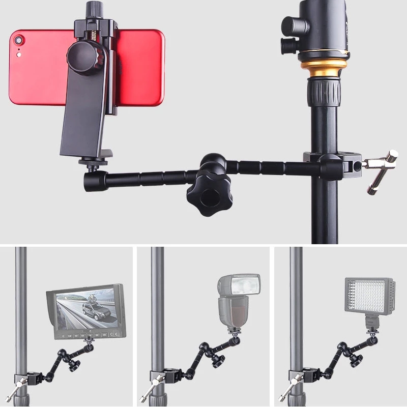 Легко управлять-Эта волшебная рука с блокирующими ручками управления, чтобы снять или увеличить напряжение, которое может дать все движения положения. Эта шарнирная Волшебная рукоятка с двумя гладкими шариковыми головками на 360 ° упрощает монтаж, размещение и регулировку любых осветительных приборов на камере и других аксессуаров.