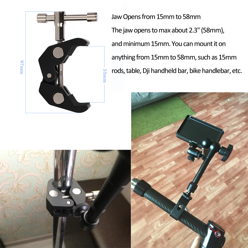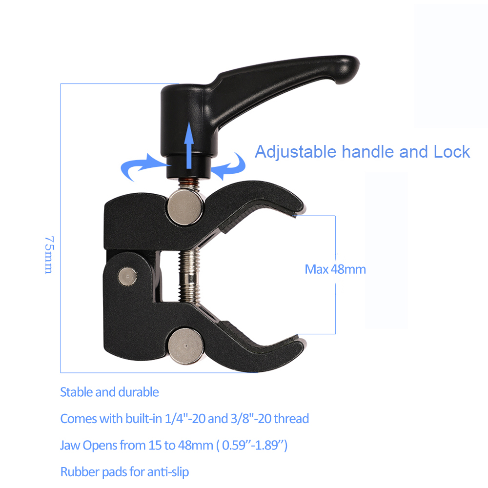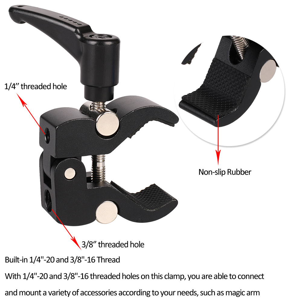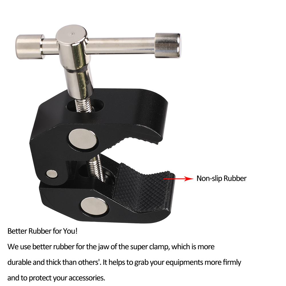 Мы используем высококачественную резину для челюсти зажима Волшебной руки, которая более прочная и толстая, чем другие. Это помогает надежно захватить ваше оборудование и защитить ваши аксессуары.