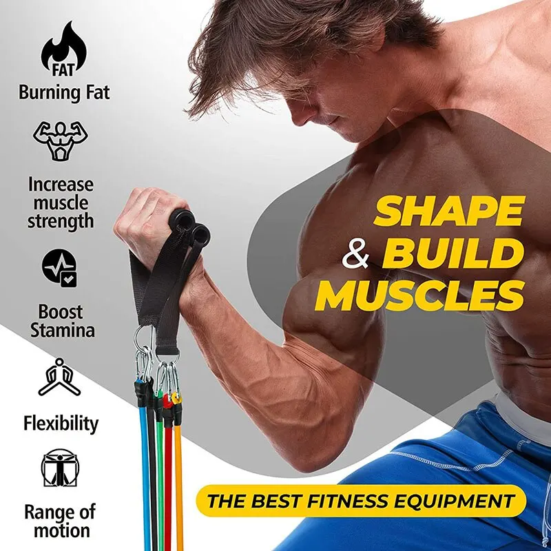 11 шт. диапазонов сопротивления 100lbs внутреннее портативное фитнес-оборудование для йоги для дома, тренажерного зала, экспандер, эластичные тянущиеся веревки