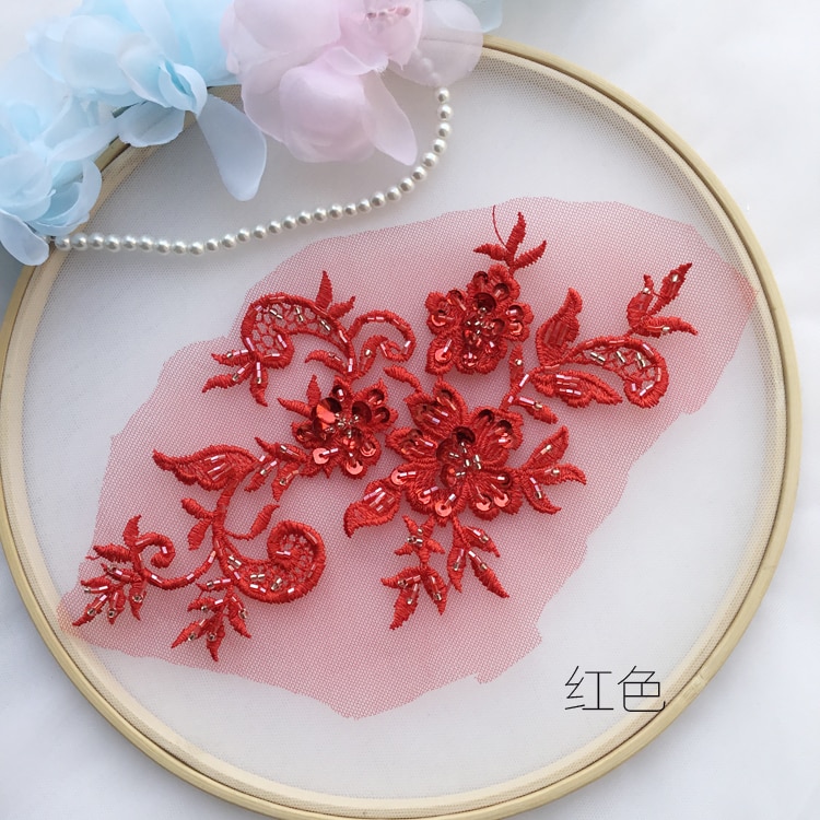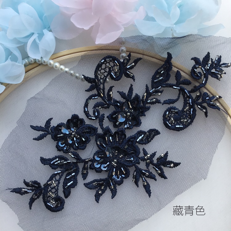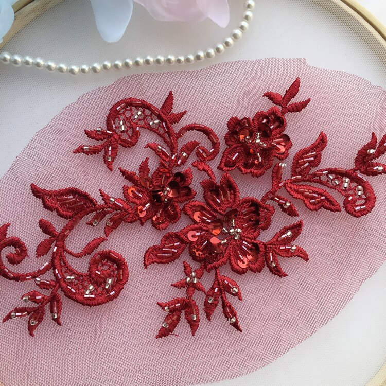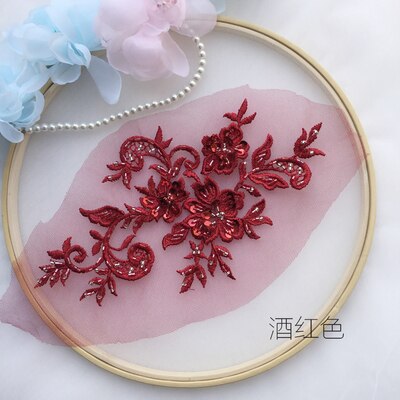 12 цветов 3D вышитое блестящим бисером кружева аппликация ручной DIY патч кружева цветочные аксессуары для одежды золото вино красный серый черный темно-синий 1 шт.