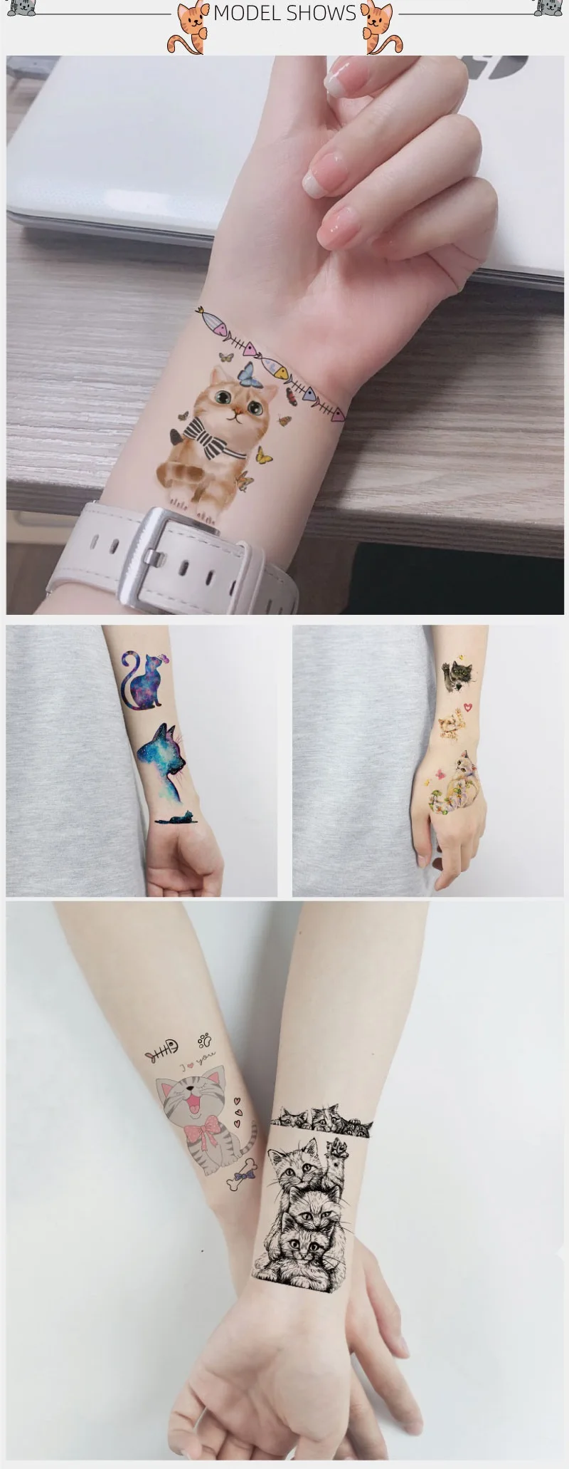 12 шт./компл., Мультяшные кошки, Временные татуировки, дети, милые питомцы, наклейки на тело, одноразовые животные, татуаж, Временный подарок для детей