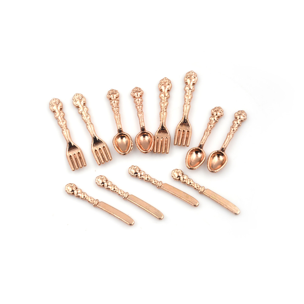 12 шт./лот Вилка Нож суповая ложка, столовые приборы Моделирование кухня мебель для еды игрушки 1:12 кукольный домик Миниатюрные аксессуары