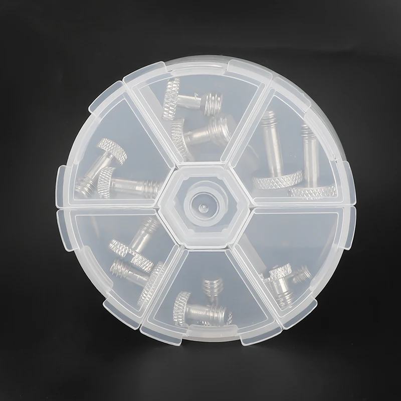 1 × 1/4 "-20 и 3/8"-16 Ассортимент болтов с прорезями Латунный никель, сделанный с пластиковым футляром для хранения для быстросъемной пластины камеры (12 шт.)