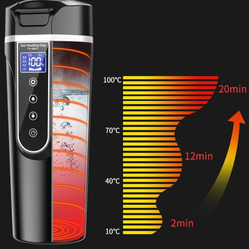 12 В 24 В портативная Автомобильная нагревательная чашка из нержавеющей стали подогреватель воды бутылка автомобильный чайник кофейная кружка ЖК-дисплей Температура