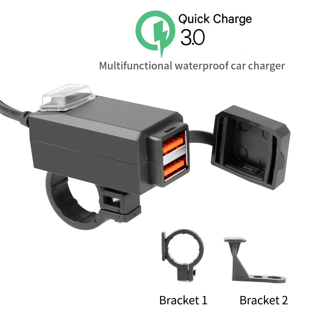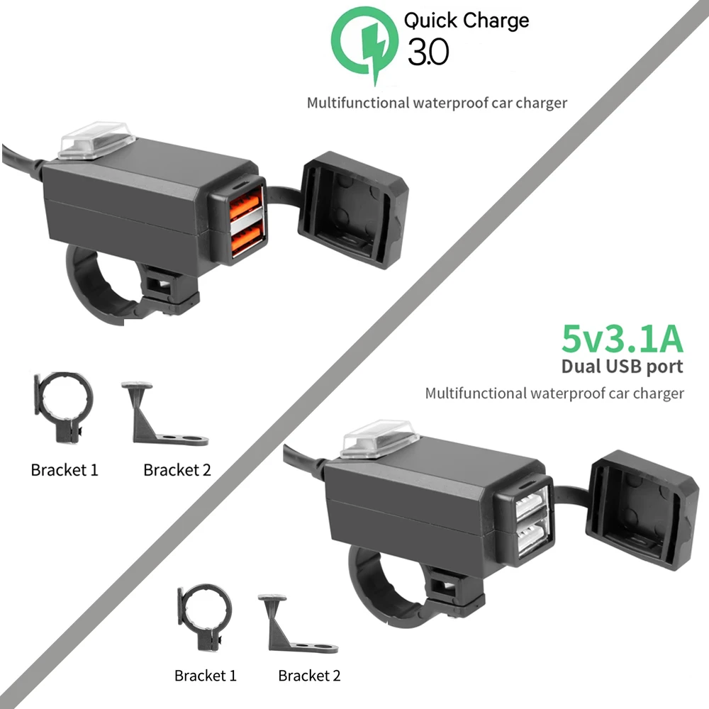 12 В-24 В QC3.0/3.1A двойной Usb-порт, водонепроницаемое зарядное устройство на руль мотоцикла, адаптер питания, розетка для Iphone Samsung Huawei