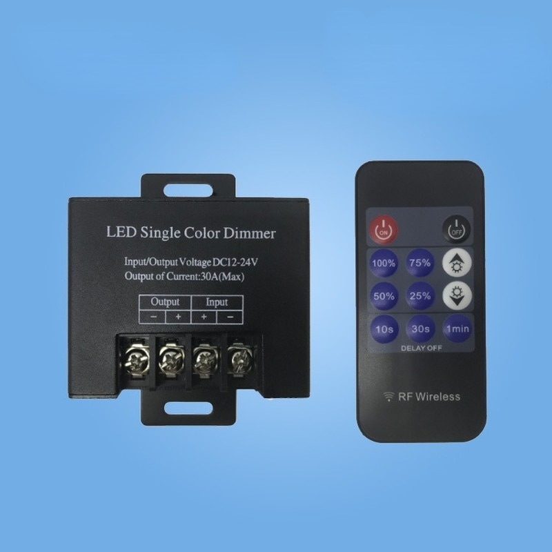 Диммер использует технологию ШИМ-контроллера для управления различными светодиодными лампами постоянного напряжения, которые могут изменять цвет RGB, такими как монохромная светодиодная полоса, светодиодный модуль, светодиодная гирлянда и т. Д. Источник питания относится к режиму входа низкого напряжения постоянного тока, а выход нагрузки положительный и отрицательный. Петля представляет собой диммер, который может обеспечивать плавное затемнение от 0 до 100%. Он принимает радиочастотный контроль. Пользователи могут настроить свет на соответствующую яркость в соответствии с фактическими потребностями.