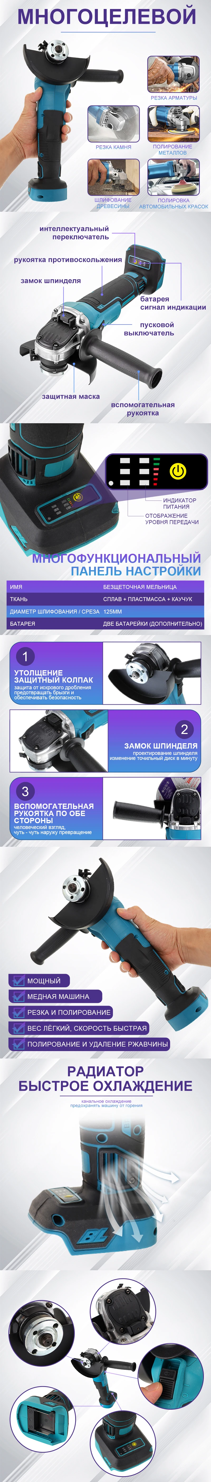 125 мм M14 1500 об/мин бесщеточная Беспроводная угловая шлифовальная машина с переменной скоростью, шлифовальная машина, полировщик, электроинструмент для батареи Makita 18 в