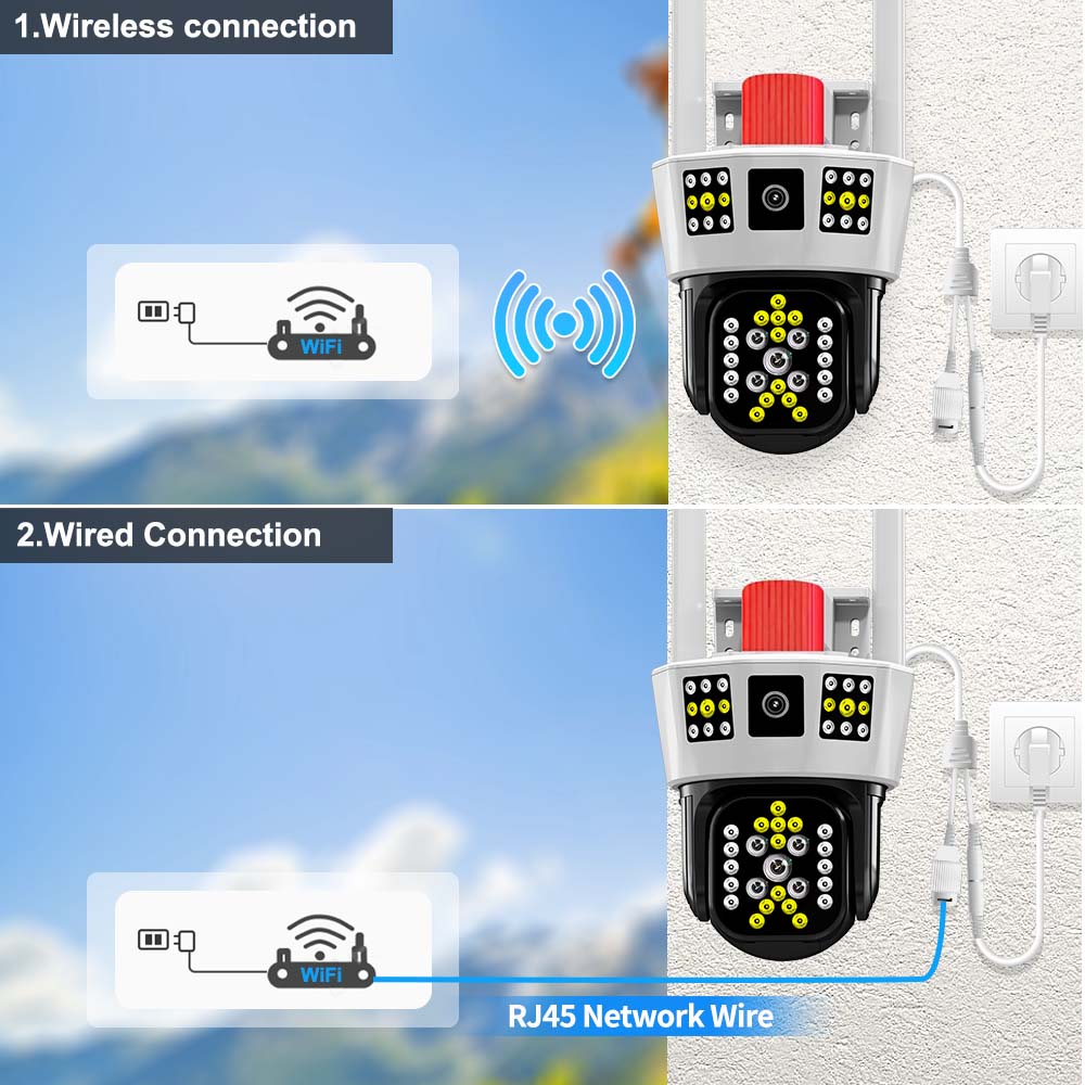 * Оснащенная интерфейсом RJ45, камера может быть подключена к Wi-Fi и сетевому кабелю