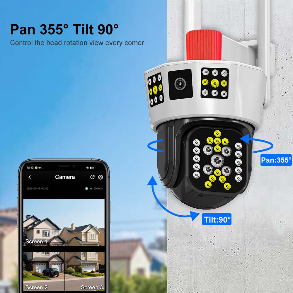 12MP 6K наружная WiFi камера три экрана 5-кратный зум отслеживание движения IP PTZ-камеры домашняя Защита Безопасности Водонепроницаемая камера наблюдения Особенность: