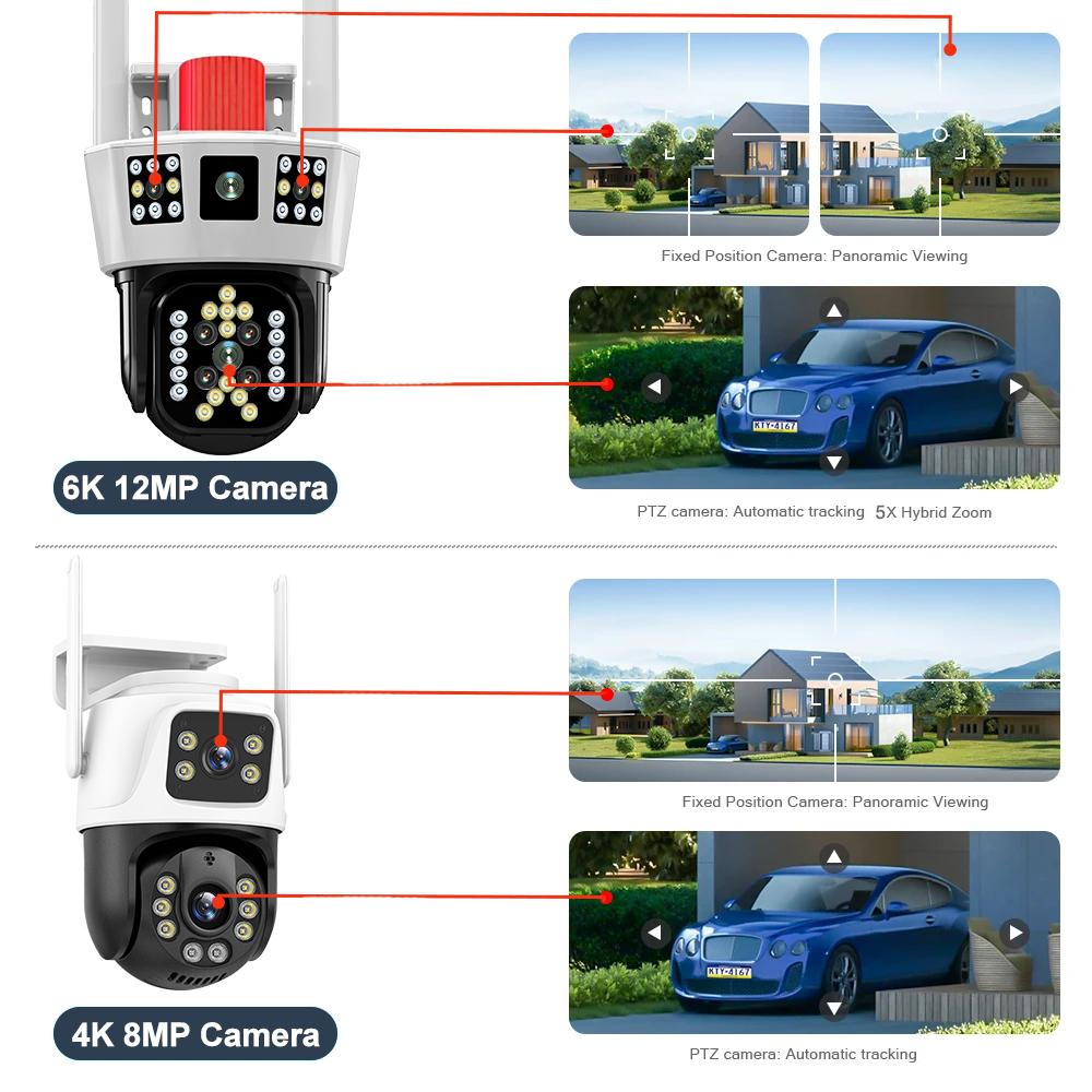 * 6K 12MP имеет более высокое разрешение, чем 4K 8MP, 5MP ,1080P. Камера обеспечивает высокое качество 12,0-мегапиксельных изображений. Принесите вам плавный и потрясающий опыт в формате Super HD.
