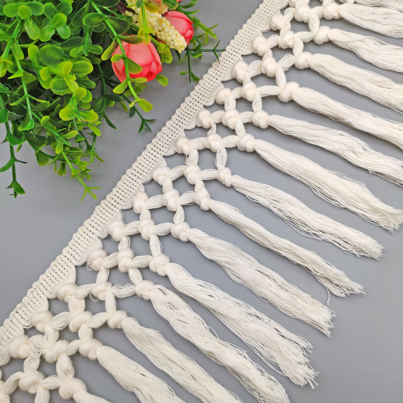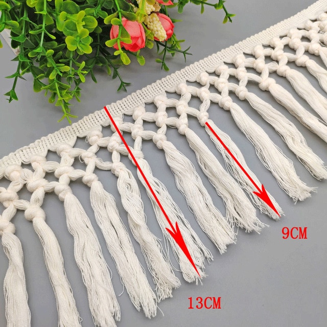 13 см бежевая Вязаная хлопковая кружевная лента с бахромой «сделай сам» для шитья одежды, занавесок, шарфов, украшений для домашняя Текстильная Одежда