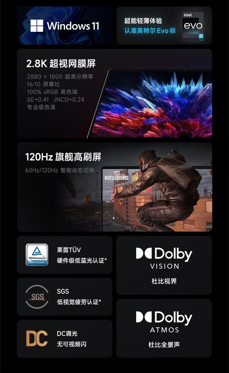 Dolby Vision Dolby Atmos Rheinland Certified Hardware Anti-Blue Light DC Dimming Low Visual Fatigue CertifiedЗвук и изображение великолепны Погружение в атмосферу кино.Твердотельные накопители LPDDR5+PCIe4.0 M.2Будьте быстрыми, чтобы быть самыми продуктивными на работе!Многоядерная производительность, одноядерная производительность