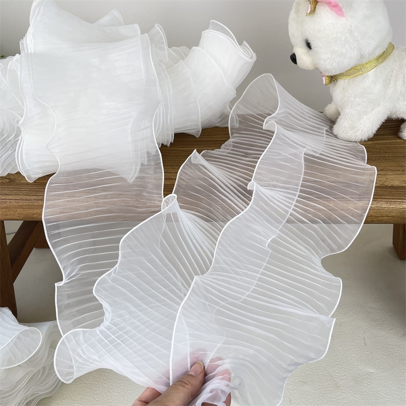 14 см ширина белая органза гофрированная кружевная ткань рукоделие с воланами лента Эластичная отделка рюшами свадебное платье занавески швейный Декор