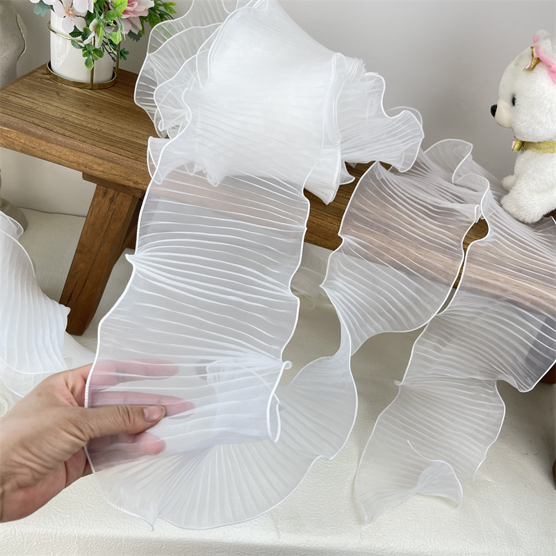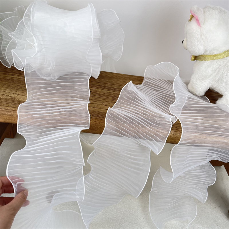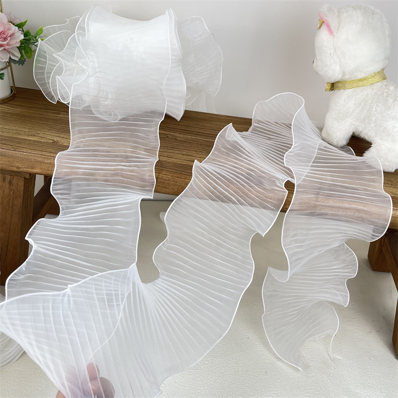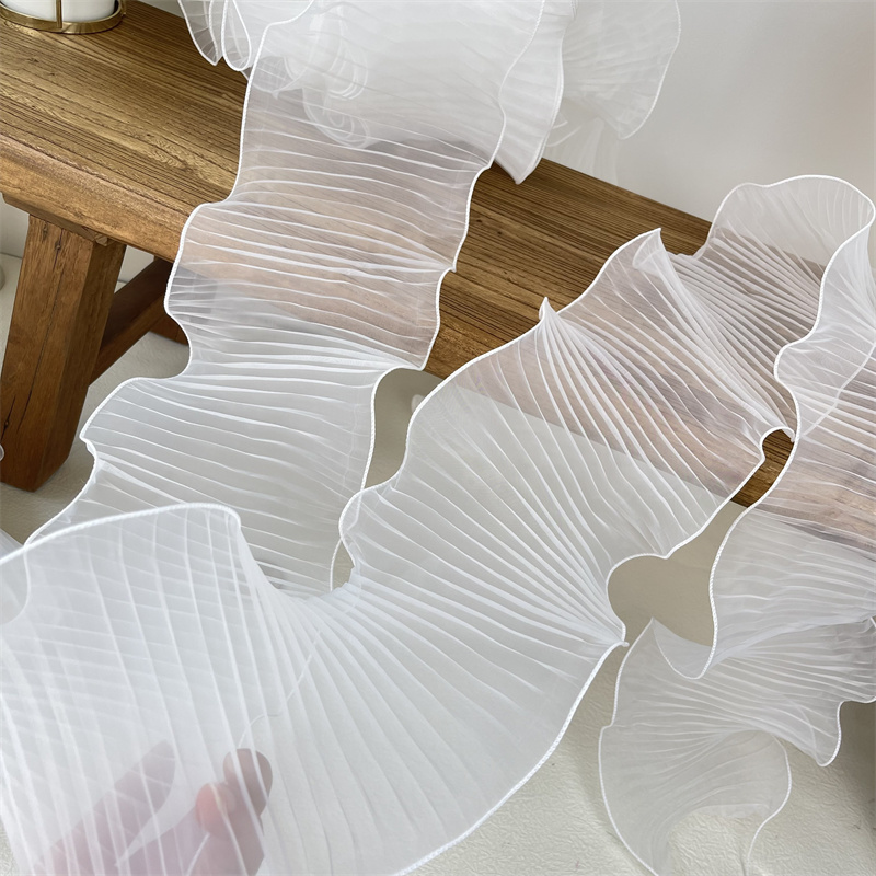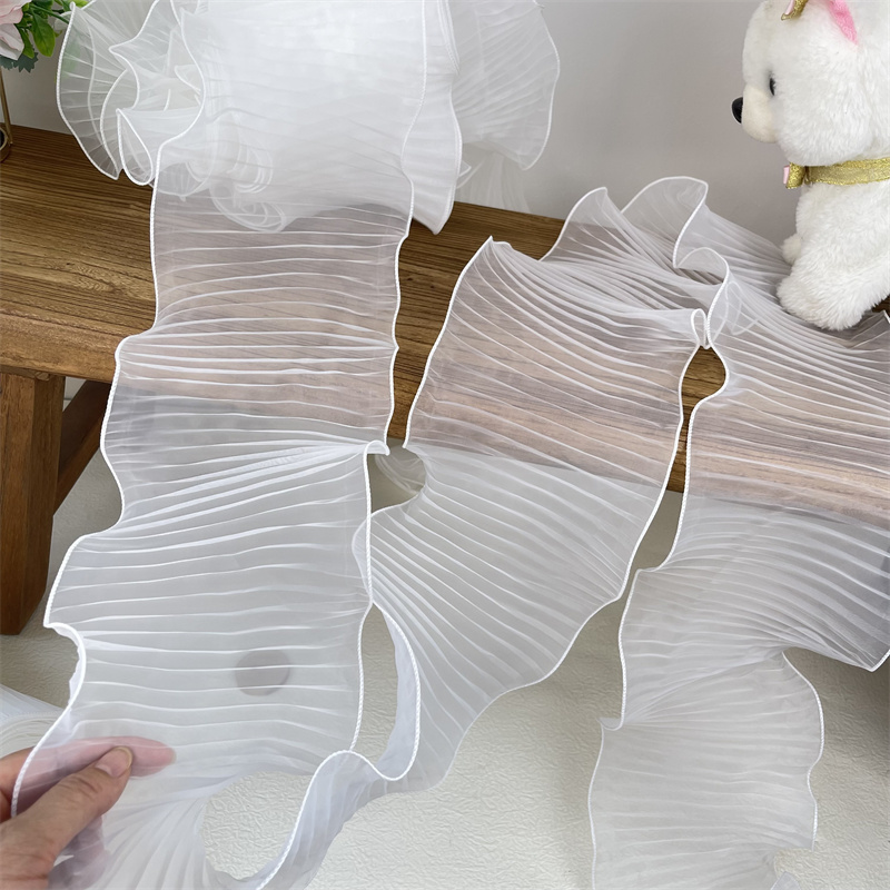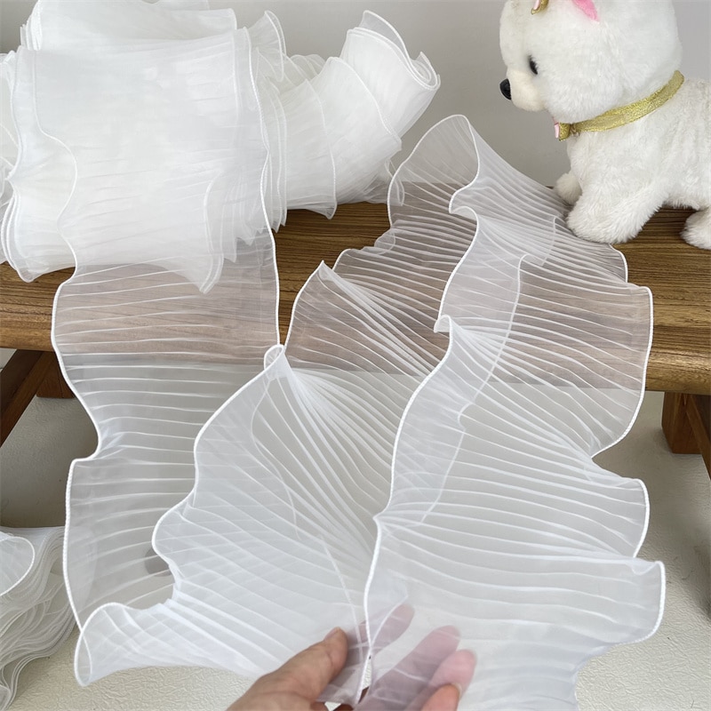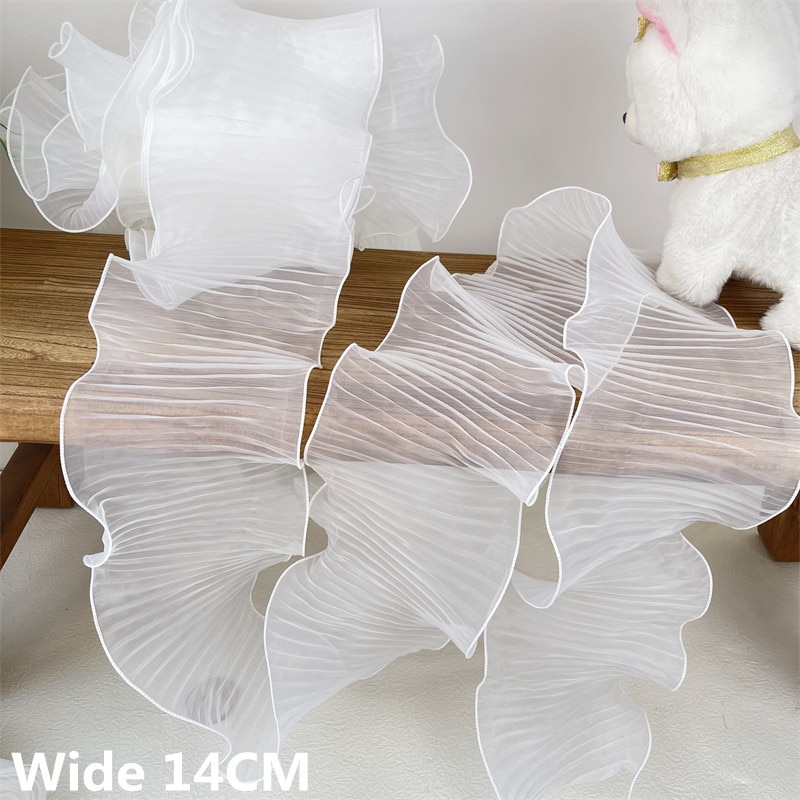14 см широкая белая органза с оборками кружевная ткань рукоделие оборка лента эластичная оборка отделка свадебное платье шторы Фотообои