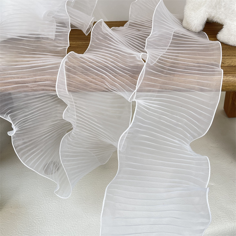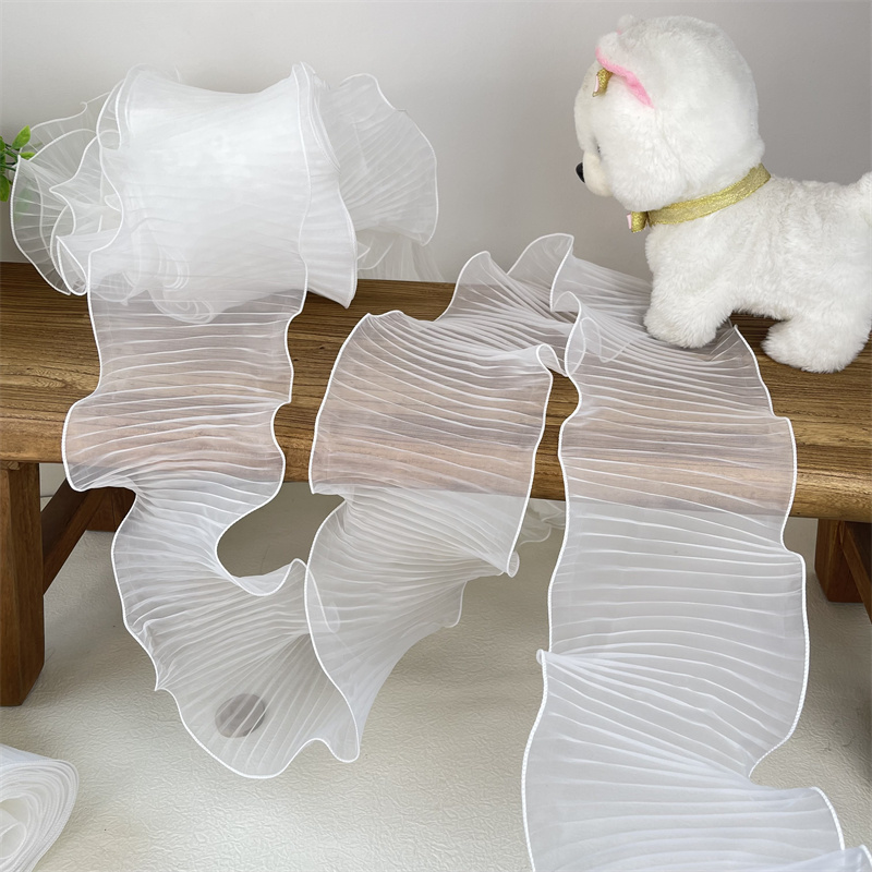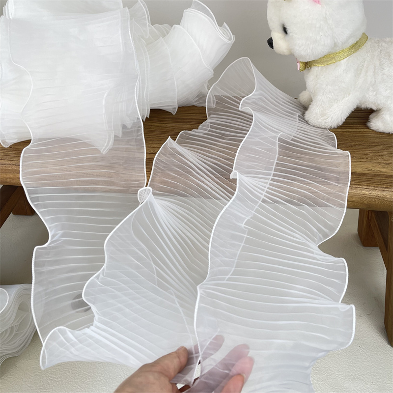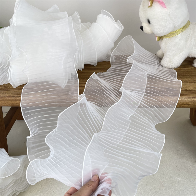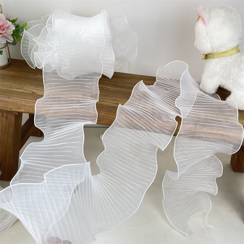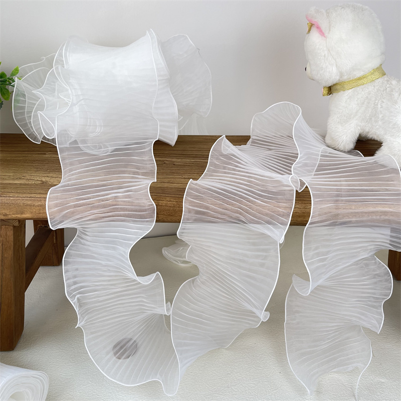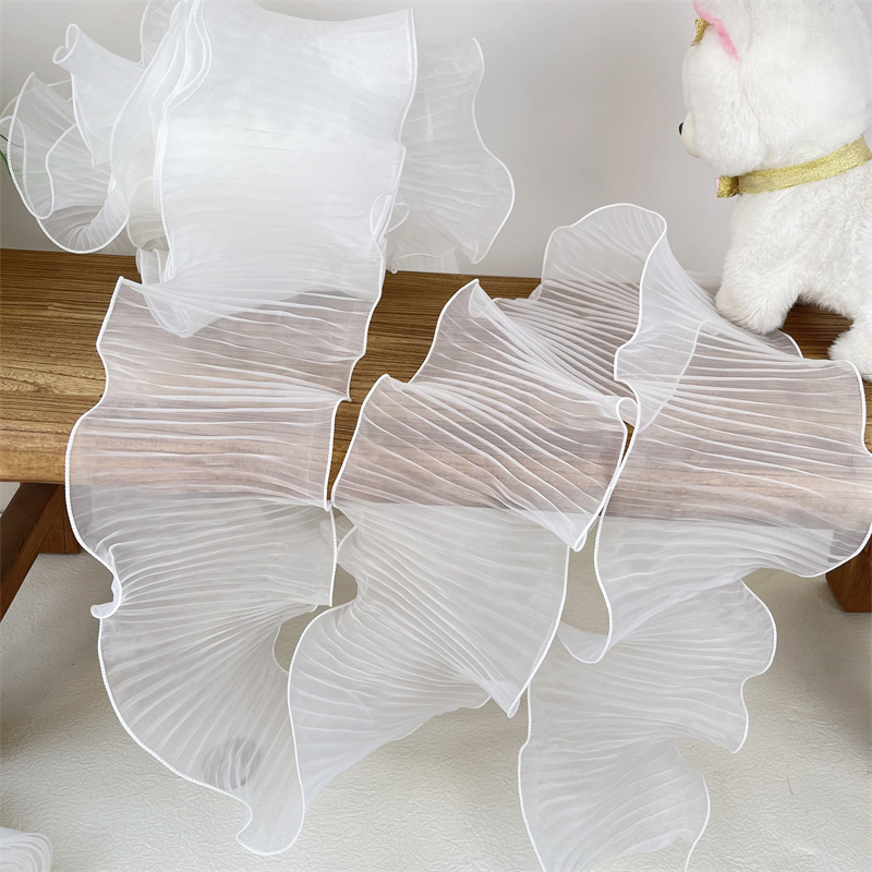 14 см широкая белая органза с оборками кружевная ткань рукоделие оборка лента эластичная оборка отделка свадебное платье шторы Фотообои