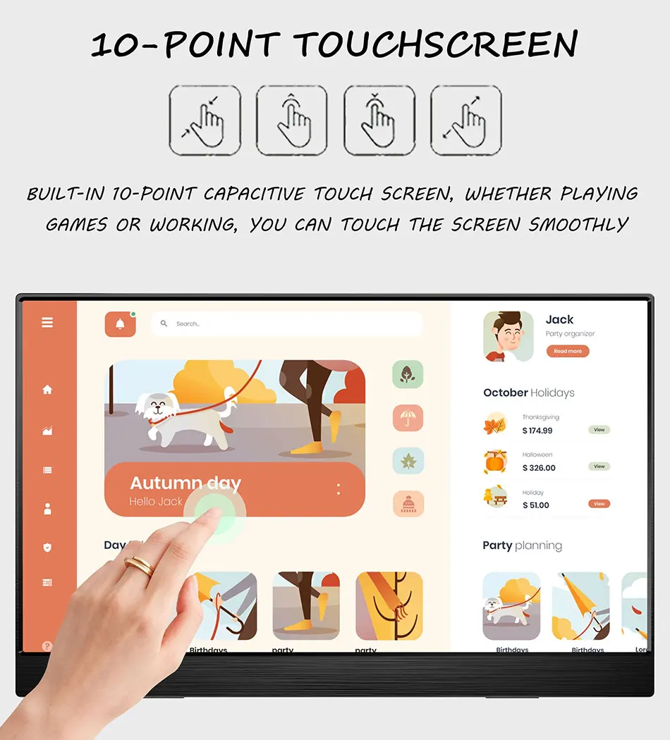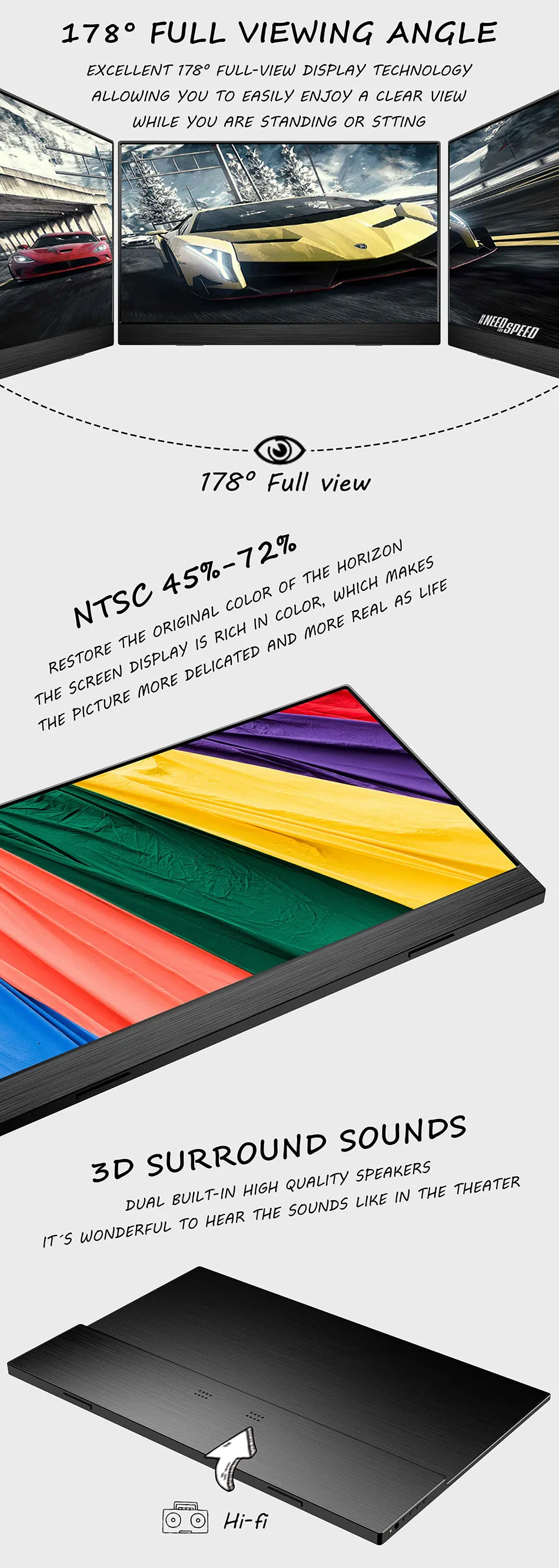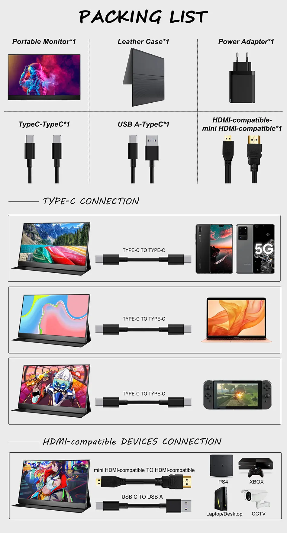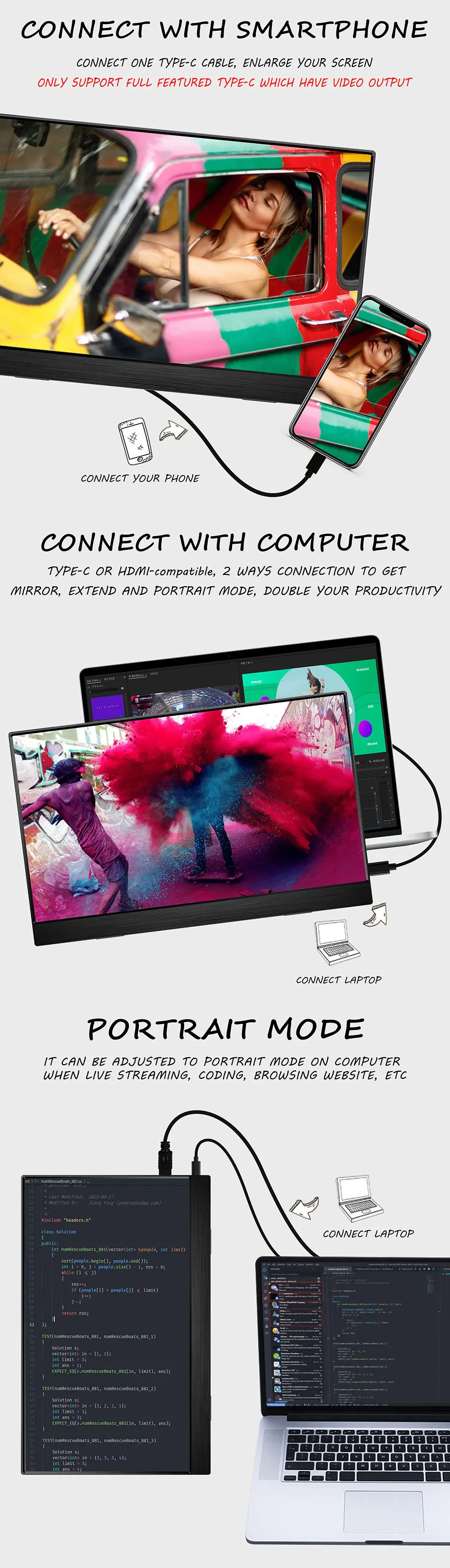 15,6-дюймовый портативный монитор с сенсорным экраном 1080P HDR IPS панель игровой монитор USBC HDMI-Совместимость для смартфона, ноутбука, переключателя PS4 XBOX