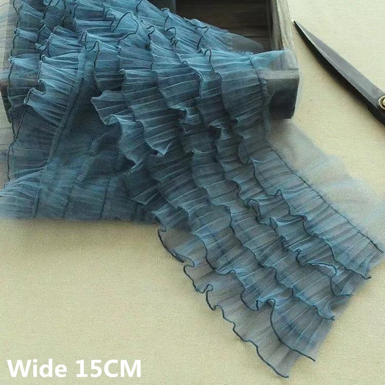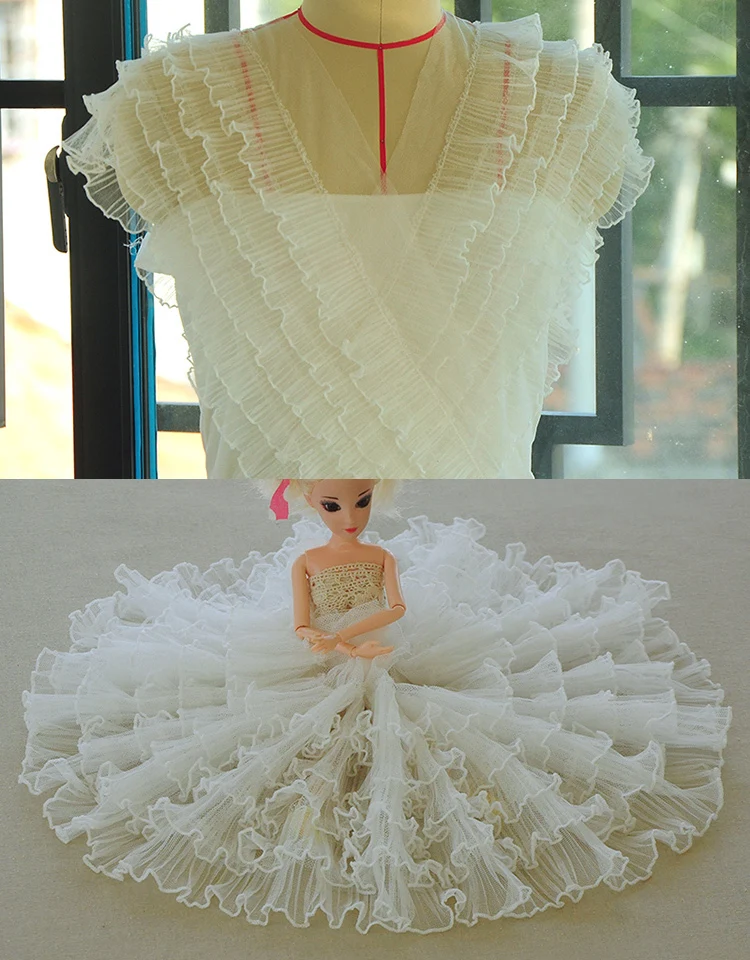 15 см широкая пятислойная 3d плиссированная ткань, сетка с оборками, кружевная отделка, женское платье, кукольная одежда, сделай сам, шитье, гипюр, Декор