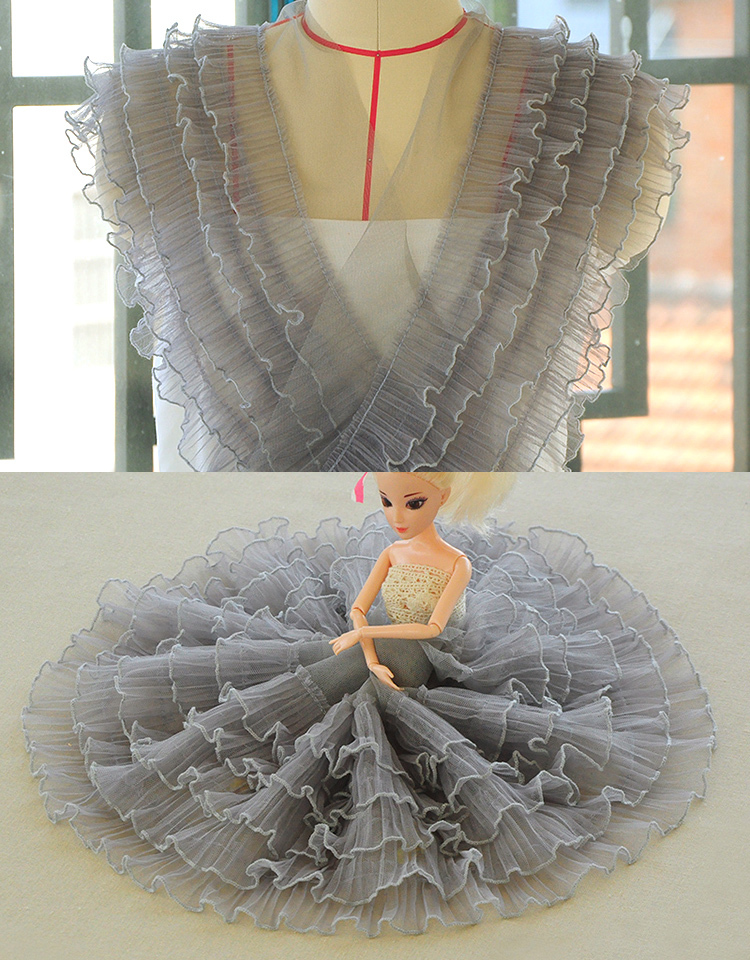 15 см в ширину, пять слоев, 3d плиссированная ткань, сетка, оборки, кружевная отделка, лента с бахромой, свадебное платье, куклы, одежда, сделай сам, шитье, гипюр, Декор