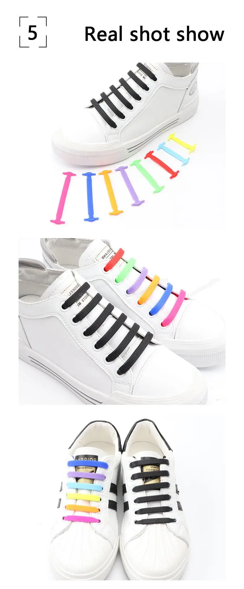 16 шт., силиконовые шнурки для обуви, шнурки без завязок, эластичные шнурки, кроссовки для детей и взрослых, резиновые шнурки, один размер подходит для любой обуви