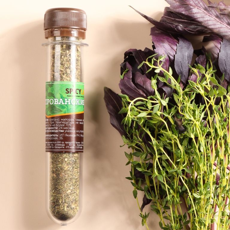 Смесь специй "Хмели-сунели", смесь специй "Карри", смесь специй "Прованские травы", смесь специй "Для мяса", смесь специй "Для курицы", смесь специй "Для рыбы", смесь специй "Для шашлыка", смесь специй "Для плова", Перец чили, Базилик, Куркума, Паприка, Кориандр молотый, Перец черный молотый, Чеснок, Розмарин.