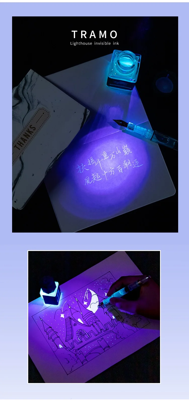 18 мл бутылка с невидимыми чернилами Turritopsis Nutricula для перьевой ручки, маяк таинственного синего цвета, видимая под УФ-защитой, школа A6714