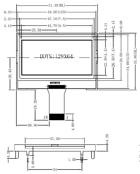 18PIN FSTN SPI 12864 ЖК-экран COG ST7565R Привод IC белая подсветка
