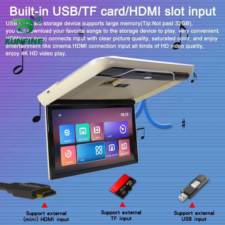 19 дюймов Дисплей цифровой Экран Android 9,0 монитор крыши автомобиля ЖК-дисплей откидной Экран накладные Мультимедиа Видео потолка крыши крепление