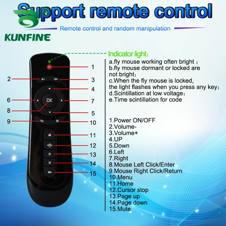 14. Поддержка USB TF HDMI, встроенный динамик Bluetooth fm-передатчик WIFI/иностранная Версия Поддержка Google/беспроводной Интернет/онлайн-трансляция/беспроводной пульт дистанционного управления летающей мышью