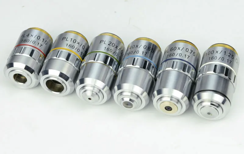 195 план ахроматическая 4X 10X 20X 40X 60X 100X оптический DIN объектив объектива Биологический микроскоп запчасти