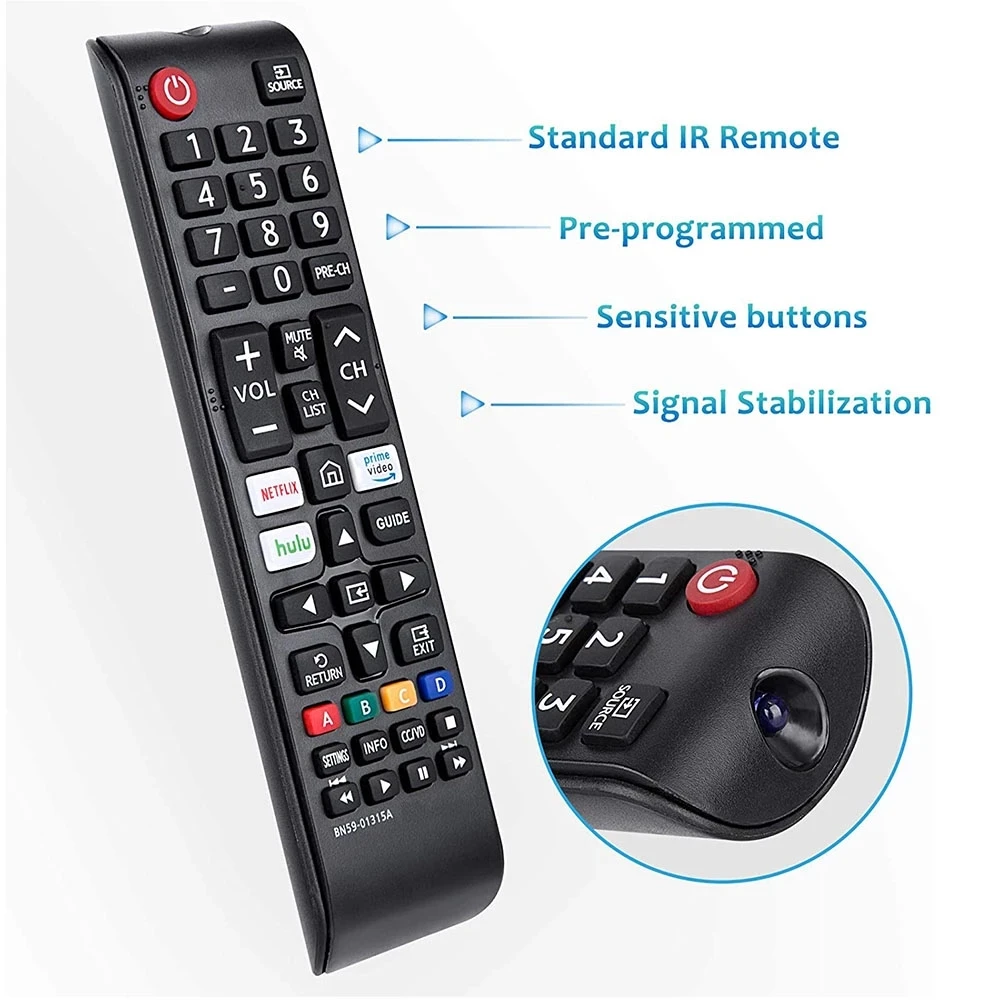 【Key Features】The universal infrared TV remote features 3 shortcut buttons for , Prime video and Hulu for extra convenience. It is perfect to replace your old or damaged Samsung TV Remote with the remote.