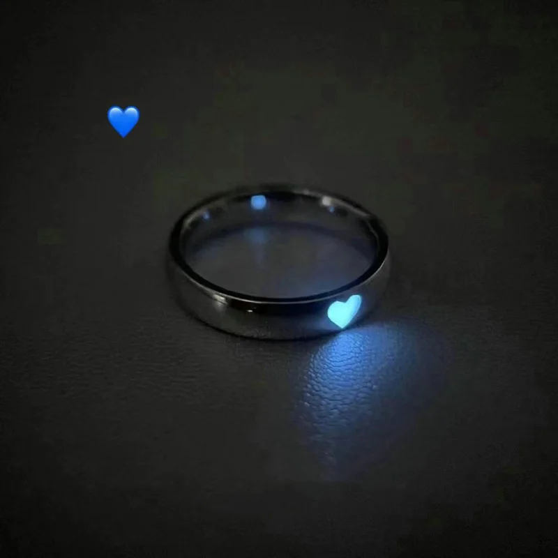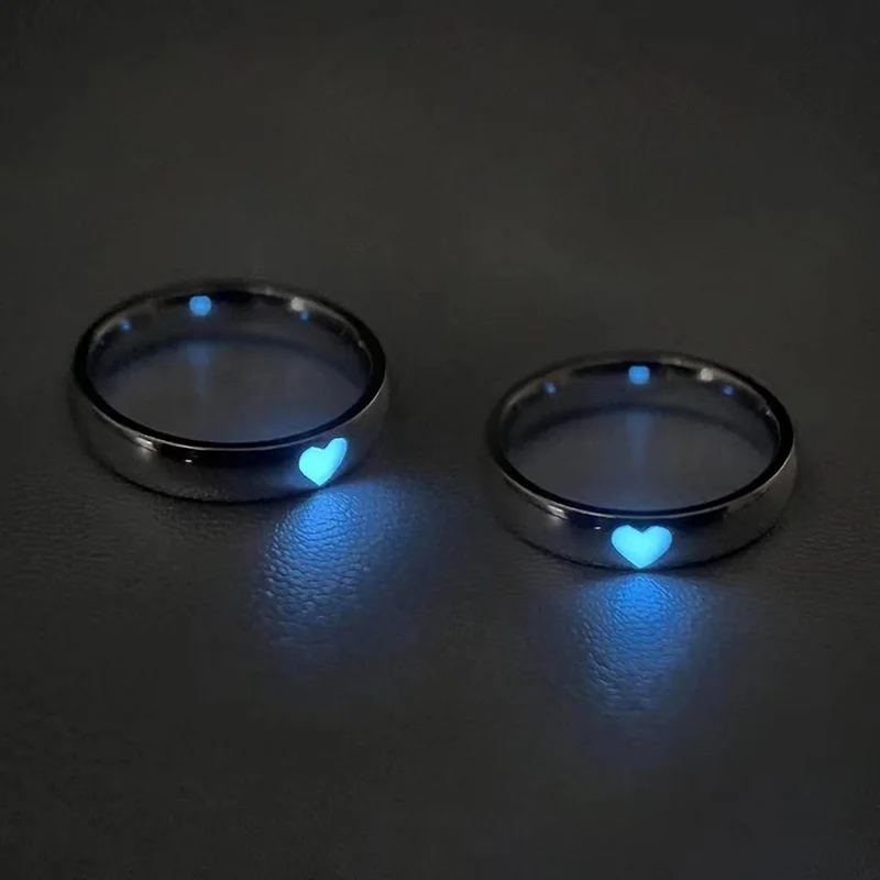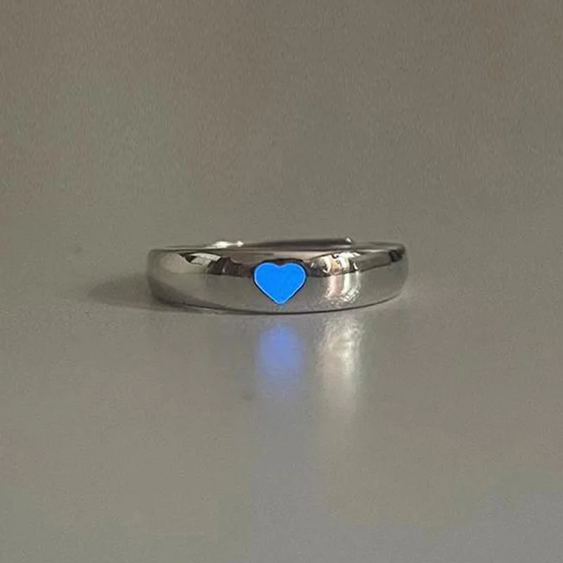 1PC Glow In Dark Luminous Love Heart Ring Fashion Adjustable Couples Rings Silver Color Pink Blue Light Jewelry Gift For Lover