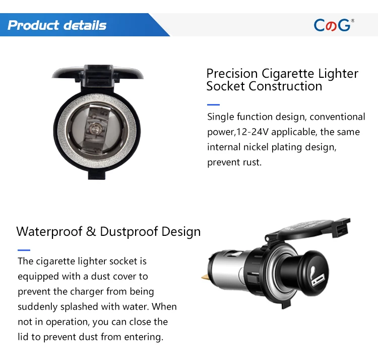5. The unique construction of the lighter socket allows it to work with both the lighter and the accessory plug. In addition, it also has a waterproof cover design, can effectively dust and waterproof.