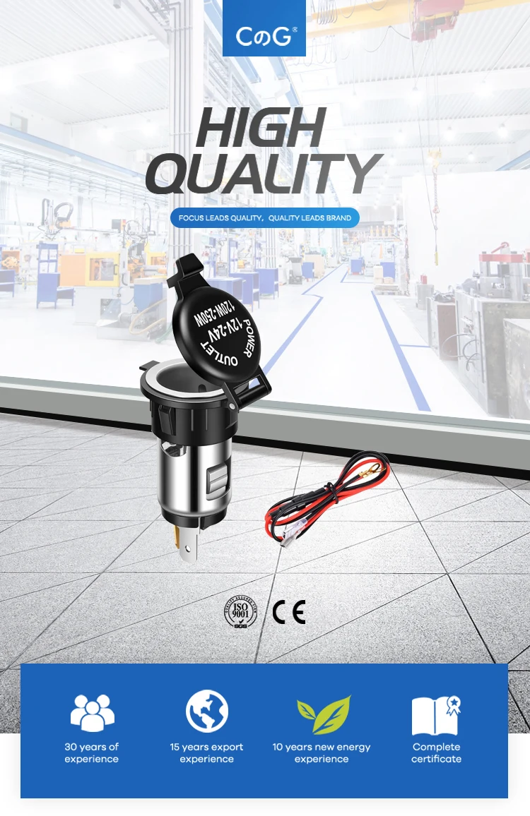 1Pcs DC12V-24V 120W-250W Waterproof Cigarette Lighter Socket And a Wire With 10A In-line Fuse Automotive Car Lighter Socket